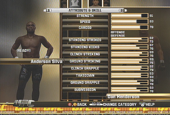 Another gameplay mode is the Ultimate Fights Mode. In this mode, you take fights that happened sorted by categories then you either re-live or re-write history. First one of the UFC card girls shows you the build-up and what happened in the original fight then deciding on the fighter you chose, you either have to re-live or re-write history. There are three ranks of accomplishments with three accomplishments in each rank for each fighter. You have to complete a whole rank of accomplishments for it to count and you either unlock an exclusive video or points to use in the UFC Shop. Five fights were put in for the Playstation 3 version that is exclusive for the PlayStation 3 since the category reads “Exclusive Playstation 3 Fights.”