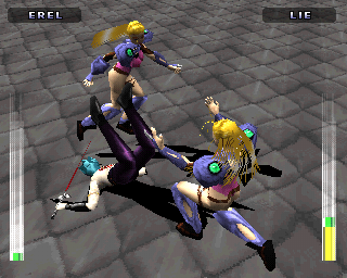 Even though this is a fighting game, this is one fighting game that doesn’t use all the face buttons on the PlayStation controller. One of the face buttons is attack and one of the buttons is block. The two other face buttons have no function. You go up to your opponent and repeatedly mash the attack button.