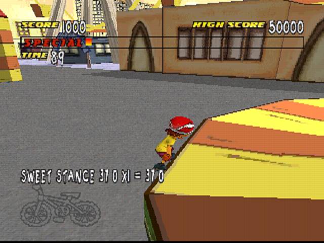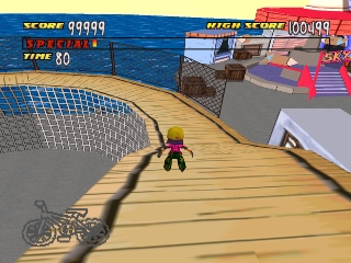 The gameplay is a bunch of events. The first event is snowboarding. All you have to do is finish the course, and every gateway you go through gives you extra time. In the next level, you have two minutes to find the six pieces of your bike while you are on rollerblades. This is more difficult than it sounds for a couple of reasons.