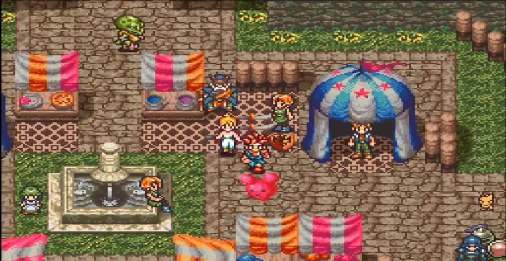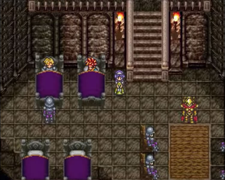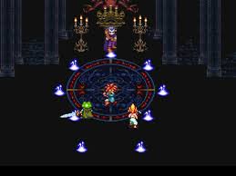 You start as Crono in the year 1000 A.D. You are going to the millenial fair and you bump into a girl named Marle. Marle asks to let her accompany you around because she doesn’t know anyone. You went to the Millenial fair to support your friend Lucca and her father by checking out their new invention. Their inventions usually explode but the Telepod teleported Crono from the left pod to the right pod. When Marle wants to try it out, her pendant affects the machine and Marle ends up lost in time. The pendant is left behind so Crono grabs the pendant to follow where Marle ended up. When Crono gets to the castle, Crono is heckled until the queen tells them to treat Crono with respect because Crono is her guest. When Crono talks to the queen in private, the queen reveals she is your friend Marle then after a couple of minutes of talking, Marle disappears right before your eyes. As you are about to leave the castle, Lucca catches up to you and reveals that Marle is a descendant of Queen Leene. In the original history, Queen Leene was kidnapped but rescued. When Marle showed up to the castle not knowing where she was, the search for Queen Leene was called off. With the search called off, Queen Leene would not survive and any descendants of Queen Leene would never be born. Lucca says if you and Crono can still rescue the queen, then Marle may return safely. So Crono and Lucca check out the cathedral next door and meet Frog who is also searching for the Queen. After going through the cathedral, you can rescue the queen if you defeat the monster masquerading as the chancellor.