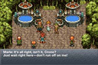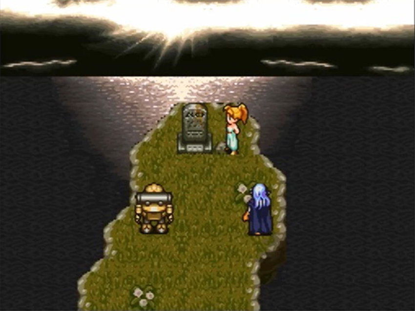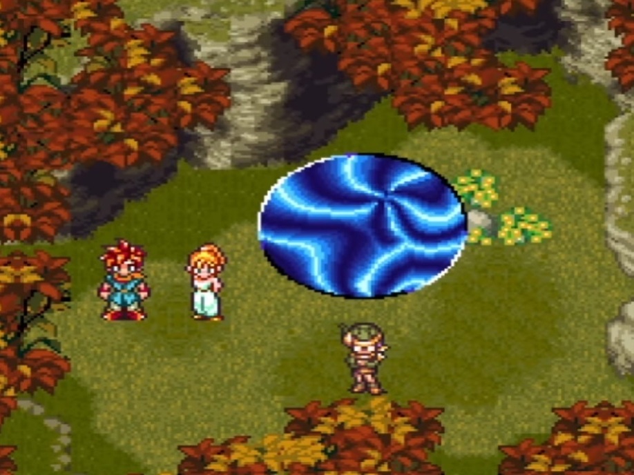 After rescuing the queen, Marle reappears where she disappeared and the three of you return to your time and you bring Marle to her castle. You get accused of kidnapping Marle and trying to overthrow the kingdom. Whether or not you get found innocent or guilty, you are ordered to be executed. After you break out or Lucca saves you, when you escape Marle orders the servants trying to catch you to stop before running off with you and Lucca. You get cornered but find a portal you can use to escape. When it comes down to using the mysterious portal or being captured, you use the portal and end up in a post-apocalyptic world. You find a robot in one of the domes and Lucca can restore him to working condition. After Robo is fixed, he tries to open the door in the dome you found him but it’s impossible. You have to go to the factory up north to turn the power on but the power won’t stay on long so someone will have to stay at the dome to open the door when the power turns on. After you turn the power on, the facility’s security robots which are just like Robo but blue destroy Robo. When you fight off the robots, you bring the robot to the dome so Lucca can fix him. While Lucca is fixing Robo, you explain to Robo that you are trying to stop the apocalypse that happened in 1999. The next morning when Robo is fixed, he decides he wants to come with you to save the future since nothing is left for him in 2300. The four of you use the portal but you arrive at The End Of Time. At the end of time, you find out that you can only travel in groups of 3 or less. You also get directed to meet a creature in the next room who can grant party members respect. While there is much more story, that is the story in the first three hours of the game.