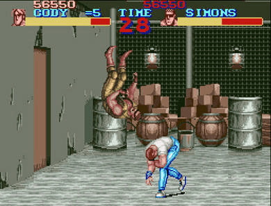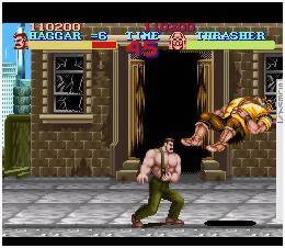 While there are only six levels in the game, this game is not easy to complete. You can find food to restore your health and items that do nothing except give you points. You can only get one extra life in the game but if you know a code to access the secret options menu, you can get more extra lives and start with more lives. Cody and Haggar both have special moves in case they are getting hit from both sides at once but the special move to get you out of that situation will take a little health away.