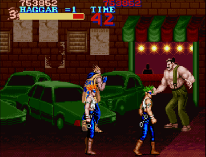There are a couple of bonus levels you can reach where you can earn extra points which will help you get extra lives depending on the extra life target scores set in the option menu. After level 2, you are in front of a car belonging to a member of Mad Gear with a pipe and you have 30 seconds to destroy the car. After level 4, you have to smash a bunch of windows and get to the end of the level before the timer runs out.