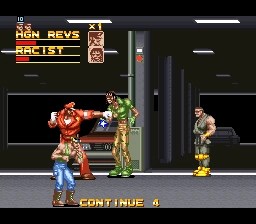 When it comes to the challenge of the game, I think this game presents a harder challenge than Final Fight. One thing that helps you is when your character loses about three-quarters of his health, he goes into an anger mode where his attacks are stronger and he is invincible for a brief moment. Final Fight is hard enough to complete in my opinion but if you think Final Fight is too easy then you should see how you feel about the challenge presented in Rival Turf.