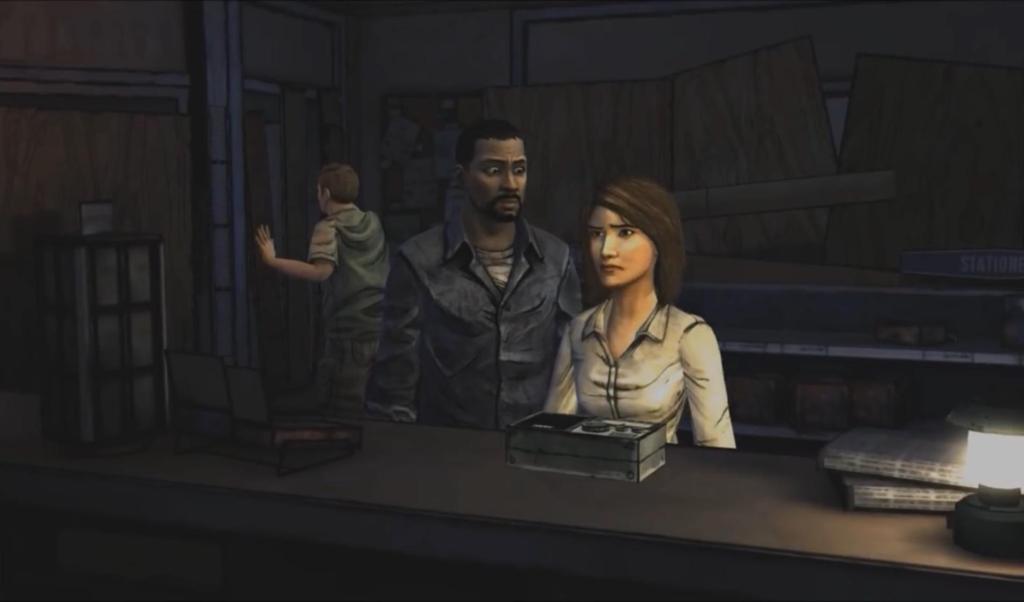 Lee helps himself into a house hoping to find help and he finds a walkie-talkie with a child hiding in their treehouse because the babysitter had become a zombie. The child is named Clementine and after Lee earns her trust, they leave together hoping to find more survivors.