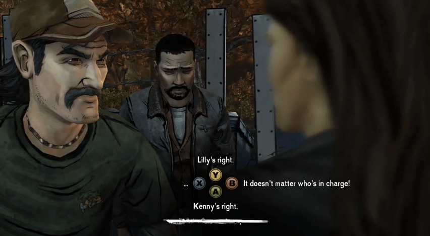 There are a few different aspects when it comes to the gameplay. You do press buttons to perform various actions and move Lee around but the biggest aspect of the gameplay is conversation choices. There are a lot of conversations that happen in the game and how you choose to react to these conversations will have an impact on who stays loyal to you throughout the game and who may end up turning into an enemy.