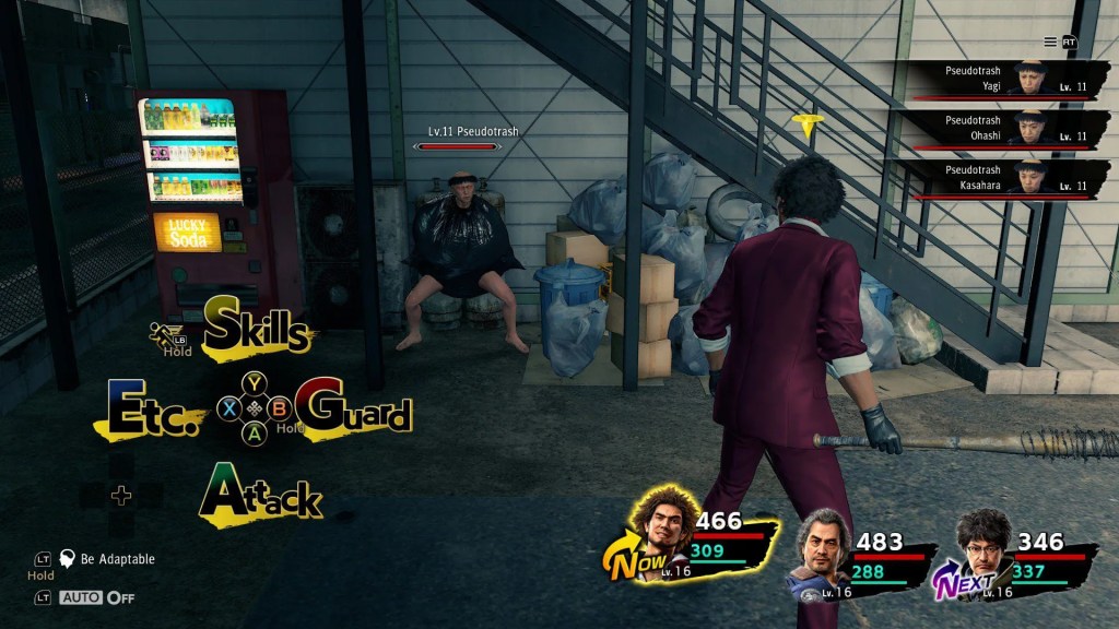 The graphics are beautiful. While the city looks alright in the daytime, it looks much better at night with all the lights on. There are plenty of different locations you visit throughout the story. When it comes to Ichiban and the rest of his party, they all have unique looks which fit the backstory of their character. You also get new outfits that your character can wear while in battle although they will revert to their original clothing when the battle is over. Whether or not you want your party to wear their alternative outfits depends on how you feel about the different outfits.